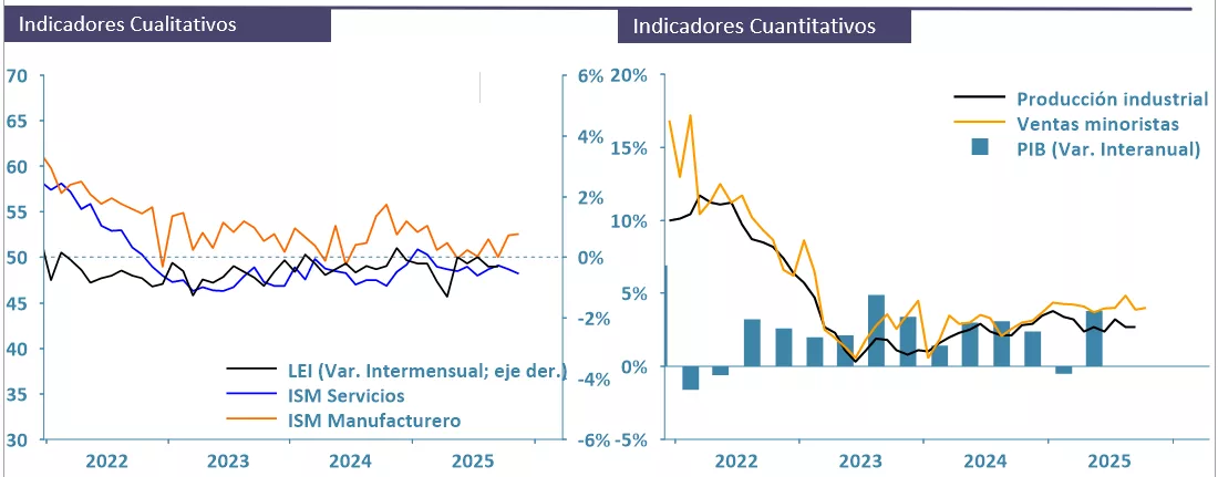En renta fija, los rendimientos del Treasury a 10 años cerraron diciembre en 4,11 %, subiendo moderadamente (+9 pb en el mes), aunque aún por debajo del promedio del segundo semestre. Esta leve alza refleja la tensión entre la mejora de los mercados y la incertidumbre sobre la política futura de la Fed.